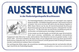 Die Ausstellung über die Dokumentation der Renovierung der 600-jährigen Rodentelgenkapelle wurde von der interessierten Bevölkerung positiv angenommen. Wir konnten mehr als hundert Besucher/-innen begrüßen. Durch den Verkauf unserer Broschüre „Rodentelgenkapelle 600 Jahre – Chronologie der Sanierung“, diverser Fördermittel und privater Spenden wurden unsere Kosten gedeckt. Wir bedanken uns bei allen Unterstützern.